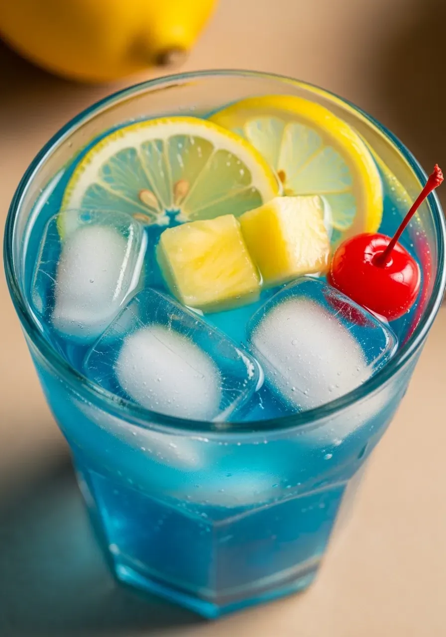 - Garnish and serve: Garnish your stunning Blue Lagoon with a fresh lemon slice and a maraschino cherry. Serve immediately and enjoy your homemade Blue Lagoon Mocktail!