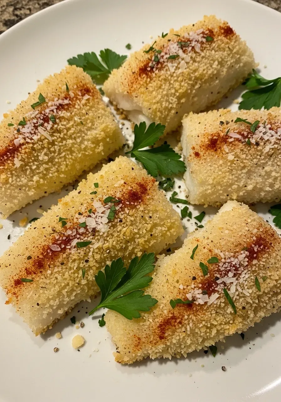 7. Serve: Finally, remove the Crispy Air Fryer Parmesan Cod from the air fryer and garnish with fresh parsley, if desired.