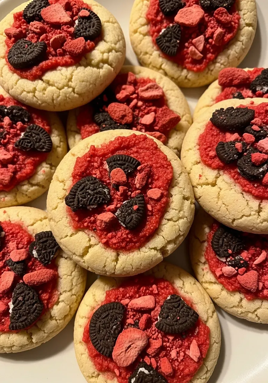 These easy strawberry crunch cookies are inspired by the beloved strawberry shortcake crunch. Featuring a soft, chewy sugar cookie base bursting with strawberry flavor, they are rolled in an irresistible crunchy topping made from Golden Oreos and freeze-dried strawberries. These homemade cookies bring back sweet memories and offer a delightful blend of nostalgic flavor and simple baking joy, perfect for a joyful treat.